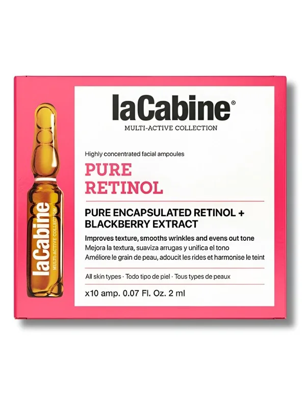 Les ampoules LaCabine Pure Retinol sont un soin intensif conçu pour cibler les signes visibles du vieillissement cutané. Enrichies en rétinol pur encapsulé, elles aident à raffermir la peau, atténuer les rides et booster l’éclat du teint. Grâce à leur formule avancée, elles pénètrent en profondeur pour stimuler la production de collagène et d’acide hyaluronique, tout en limitant les risques d’irritation.