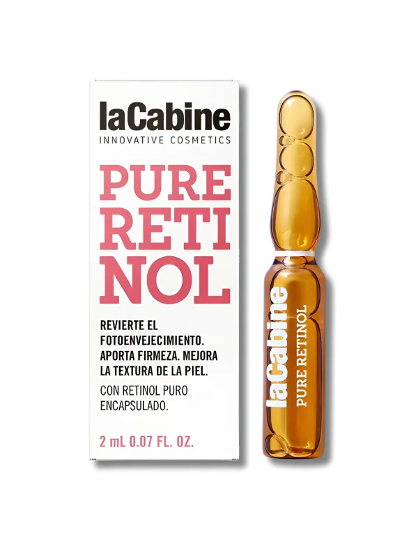 La Cabine Pure Retinol est un soin visage en ampoules monodoses conçu pour lisser les rides, améliorer le grain de peau et uniformiser le teint. Sa formule associe du rétinol pur encapsulé, de l’extrait de mûre et des phospholipides pour stimuler la régénération cellulaire, protéger la peau des radicaux libres et optimiser l’absorption des actifs.