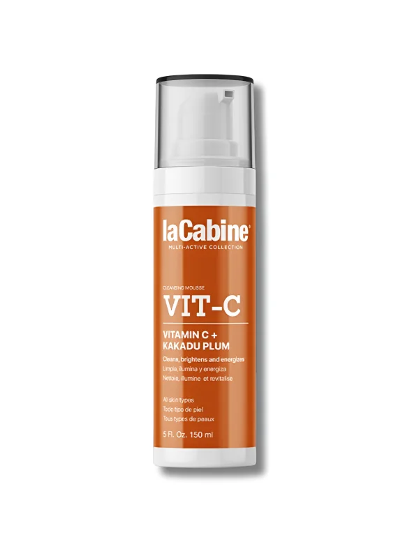 La mousse nettoyante LaCabine VIT-C nettoie, illumine et revitalise la peau en douceur grâce à la vitamine C et la prune de Kakadu, adaptée à tous types de peaux.