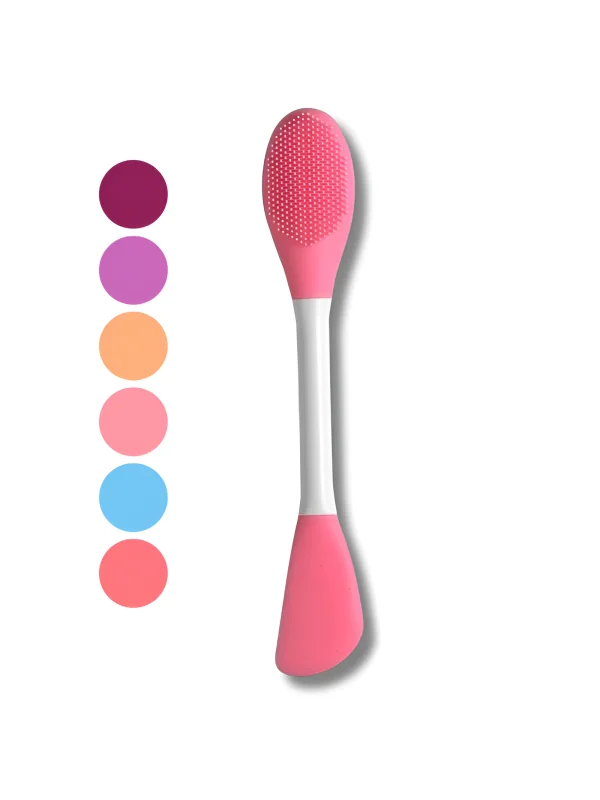 Brosse double-face en silicone pour appliquer et retirer les masques, masser et exfolier la peau en douceur, facile à nettoyer et réutilisable.