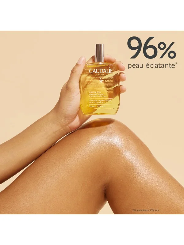 Le saviez-vous ? Grâce à son alliance de 7 huiles nourrissantes, l'Huile de Soin Soleil des Vignes améliore l'élasticité de la peau et l'illumine instantanément, sans effet gras.