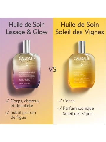 Quelle est la différence entre l'Huile de Soin Lissage & Glow et l'Huile de Soin Soleil des Vignes ?