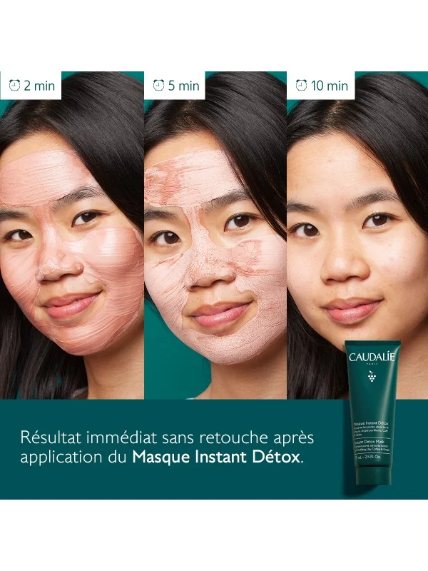 Appliquez le Masque Instant Détox en fine couche, deux fois par semaine, sur une peau propre. Laissez poser 5 à 10 minutes puis rincez.