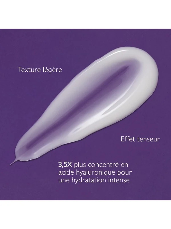 Le sérum contient des acides hyaluroniques de haut et de bas poids moléculaire, 100 % naturels, pour hydrater la peau en surface et en profondeur.