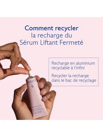 Rechargez votre Sérum Liftant Fermeté en Resvératrol grâce à cette éco-recharge en aluminium et donnez une seconde vie à votre flacon. Conçue pour être utilisée uniquement avec le flacon en verre du sérum, elle assure une conservation optimale des actifs.