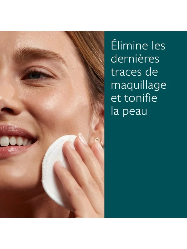 2. Sur une peau nettoyée, faire glisser délicatement le coton sur l’ensemble du visage, sans oublier le cou. Sans rinçage.