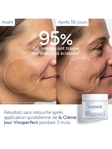 Oui, car les deux sont complémentaires. La Viniférine présente dans la Crème Jour Vinoperfect cible les taches existantes, tandis que la crème solaire empêche l'apparition de nouvelles taches.