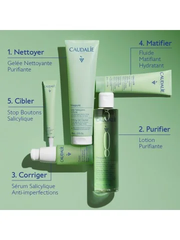 Conseils d'application : Appliquez le Fluide Vinopure matin et soir sur une peau propre et tonifiée, seul ou idéalement après votre sérum. Évitez le contour des yeux.