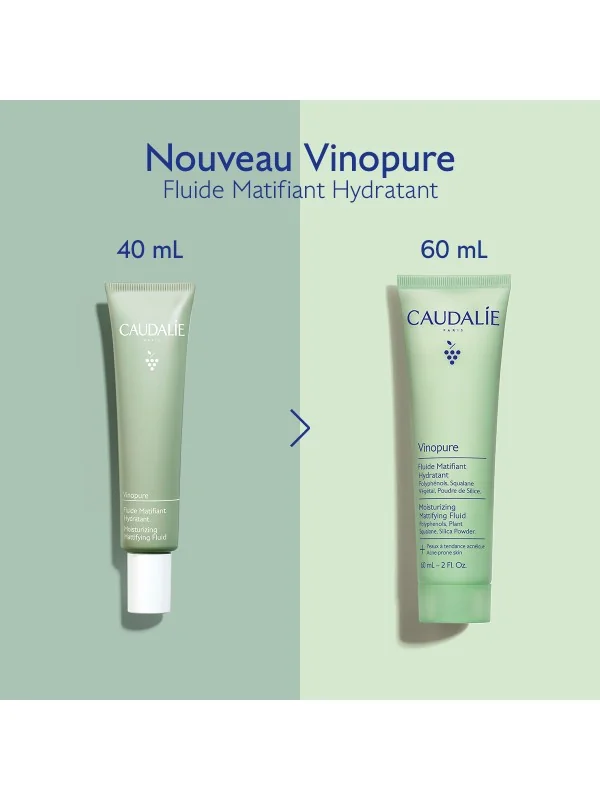 Description : Grâce à sa texture légère, le Fluide Matifiant Hydratant Vinopure réduit les imperfections (boutons et points noirs), l’excès de sébum et affine le grain de peau. Fini l’aspect brillant : la peau est hydratée, mate et visiblement plus saine.
