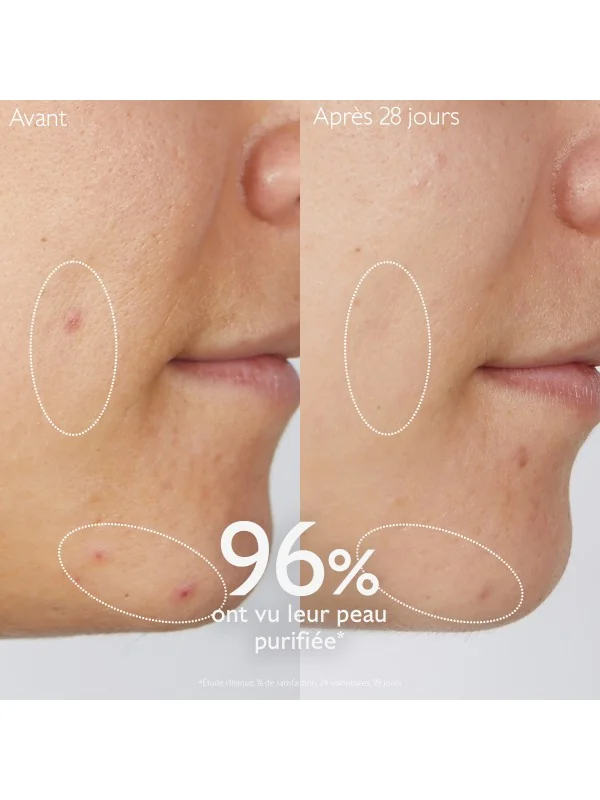 Résultats visibles : 96% ont vu leur peau purifiée*