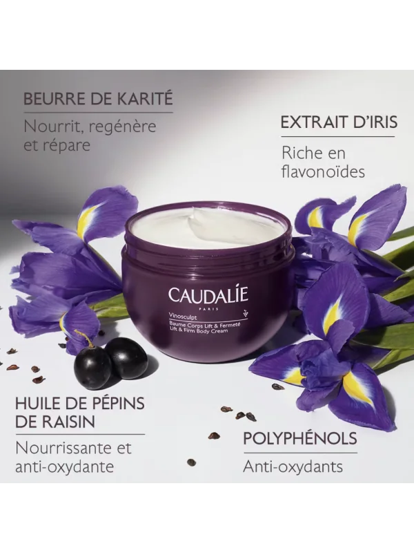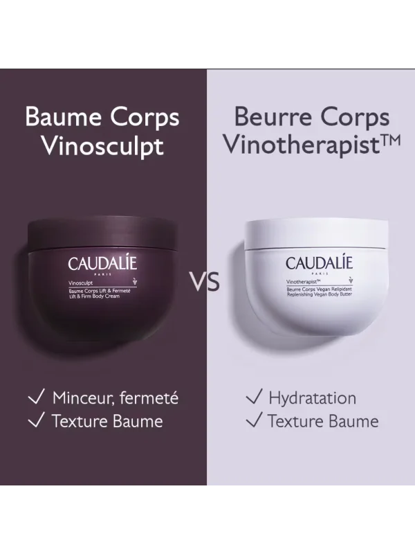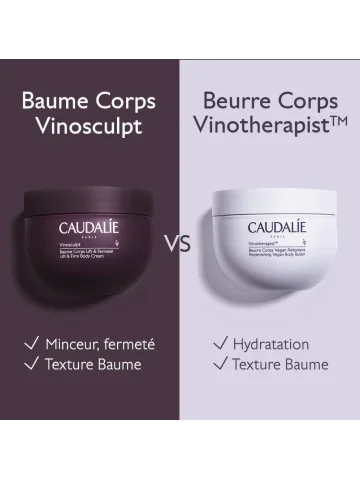 Le Baume Corps Lift & Fermeté Vinosculpt est le soin raffermissant du Programme Fermeté Caudalie. Cette routine en 4 étapes comprend le Gommage Crushed Cabernet, le Baume Corps Lift & Fermeté, le Concentré Minceur et les Tisanes Bio Drainantes. Résultat ? Une taille de pantalon en moins dès 28 jours*.