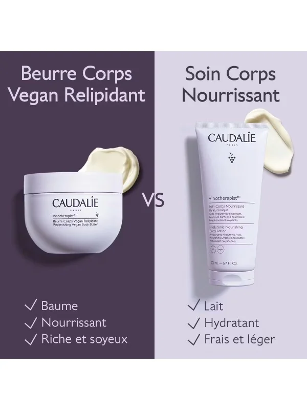Quelle est la différence entre le Beurre Corps Vegan Relipidant Vinotherapist™ et le Soin Corps Nourrissant Hyaluronique ?