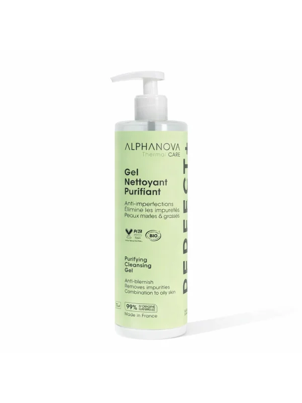 Gel Nettoyant Purifiant PERFECT+ Alphanova : formule bio qui nettoie, purifie, régule le sébum et réduit les imperfections des peaux mixtes à grasses tout en respectant les peaux sensibles.