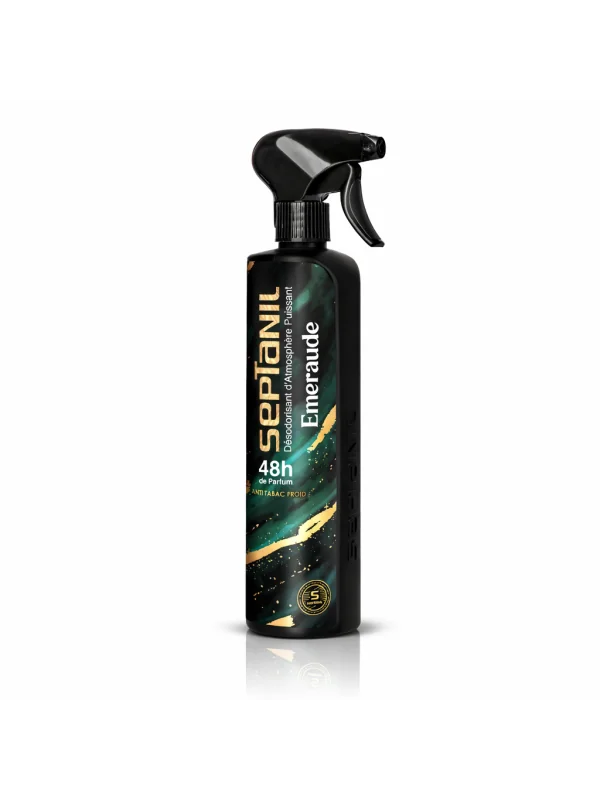 Le désodorisant haut de gamme Septanil Oud Émeraude neutralise efficacement les mauvaises odeurs tout en diffusant un parfum d’oud rare et précieux. Sa formule exclusive agit rapidement et assure une fraîcheur durable pendant plusieurs heures.