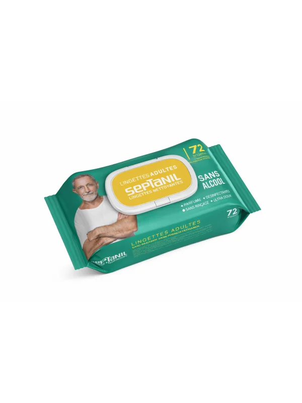 Les Lingettes Septanil Adulte Sans Alcool sont imprégnées d’une solution nettoyante au pH neutre qui nettoie la peau en douceur tout en respectant son équilibre naturel. Leur formule sans alcool permet un nettoyage efficace sans agresser l’épiderme.
