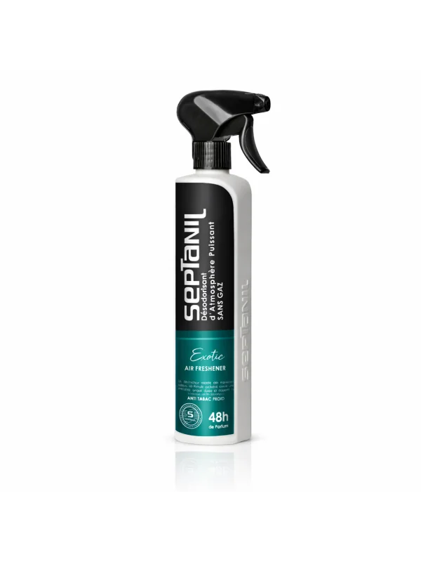 Désodorisant puissant SEPTANIL Exotique, élimine durablement les mauvaises odeurs sans gaz, idéal pour voitures, bureaux et espaces peu ventilés.