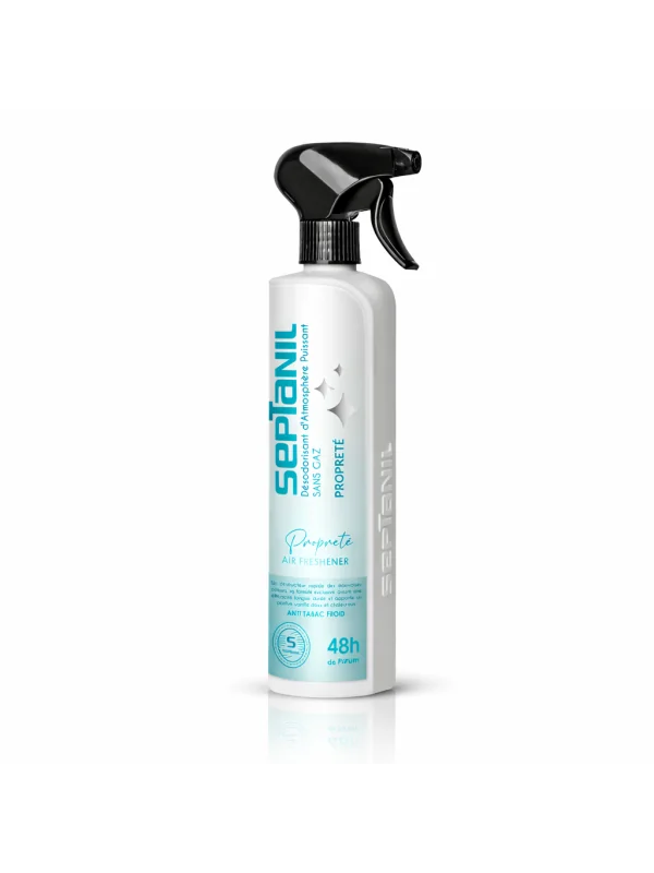 Désodorisant Septanil Propreté, efficace et écologique, élimine rapidement les mauvaises odeurs tout en apportant un parfum frais et durable.