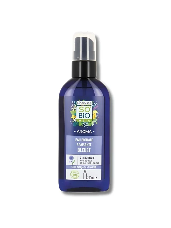 Eau Florale de Bleuet Bio SO BIO étic : Apaise le contour des yeux fatigués, élimine les traces de maquillage et offre une sensation de fraîcheur intense, pour un regard reposé.